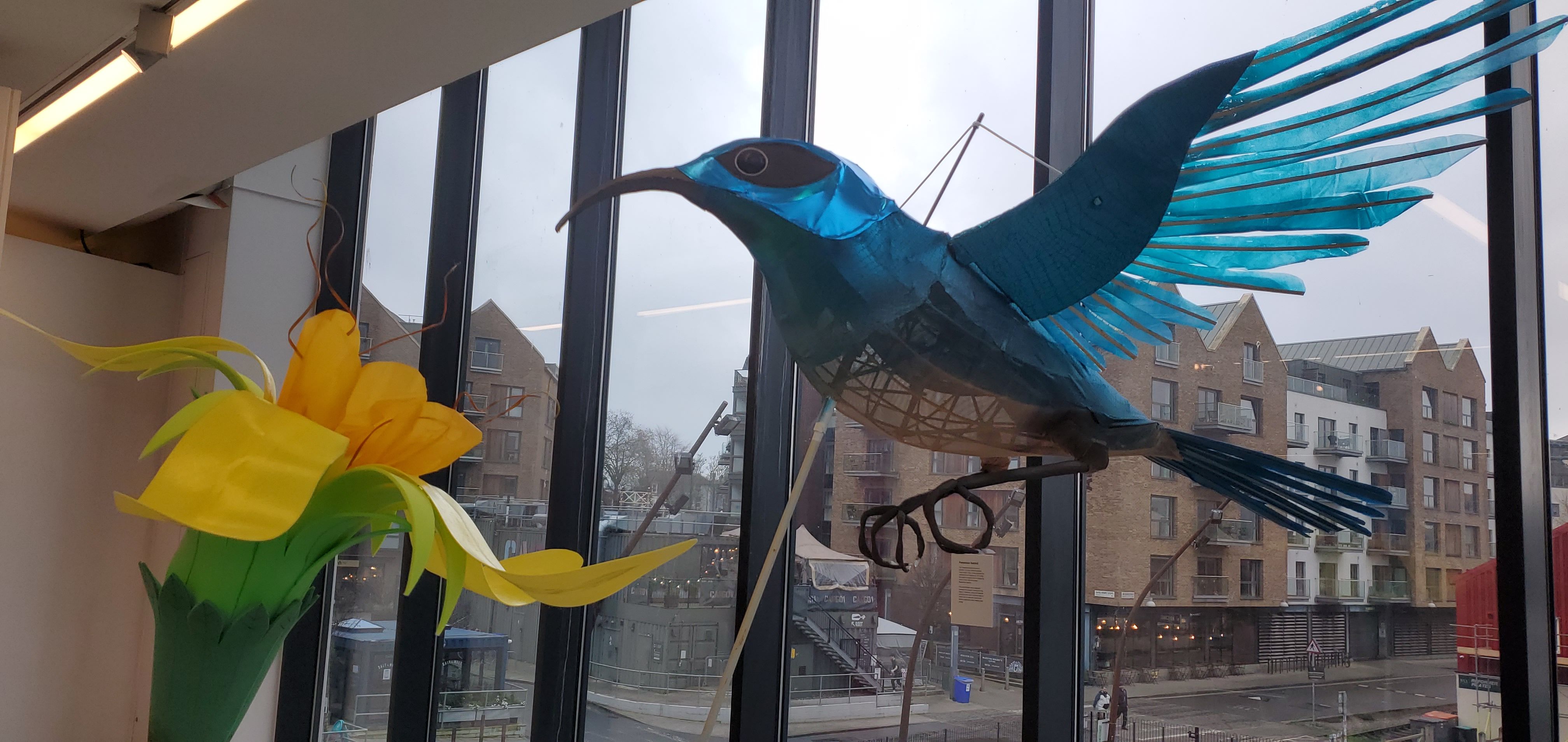 In these war-racked times we wanted to create a puppet that expressed the beauty and vulnerability of our world. We have created a giant Palestine Sunbird flying above a tandem which will be taken on protests in solidarity with Palestine and against the Israeli arms company Elbit.