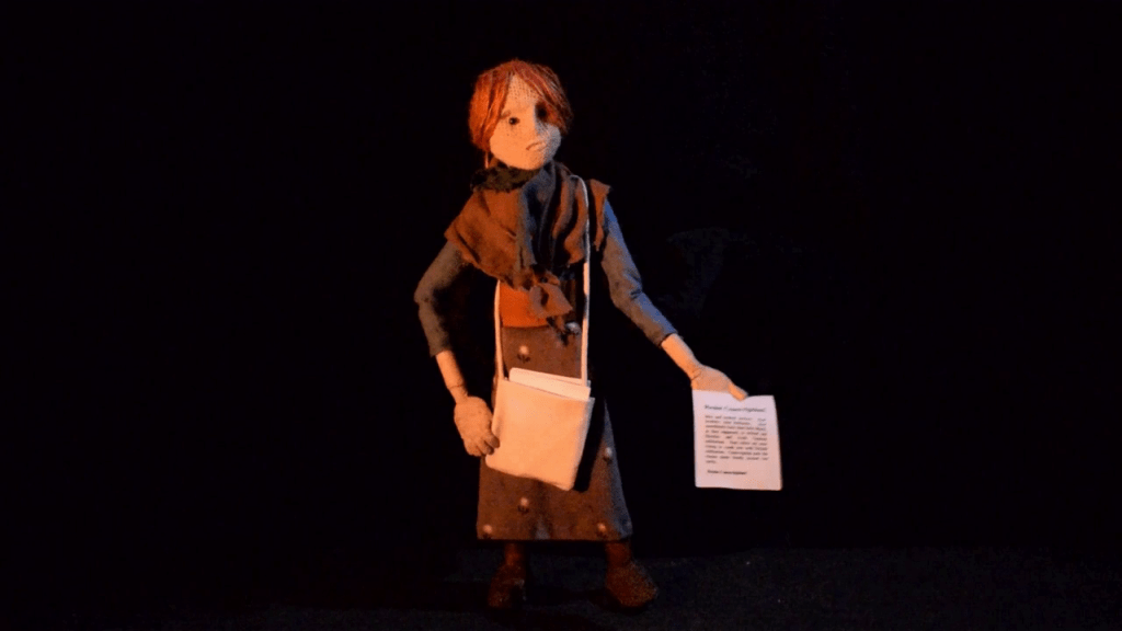 The film can be shown alongside short puppet shows in different media, telling the tales of runaways, and where they ended up. Developed for our Steps Against war puppet history walk.
