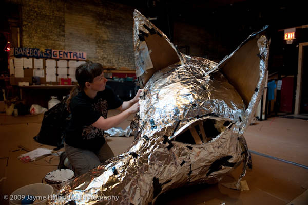 Emma was one of six “section designers” developing the show, with the co-directors and community participants. This included a collaborative research process; puppet build incorporating community making workshops; choreographing the scene, and stage-managing it in performance.